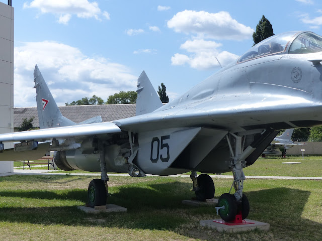 Na de vissza a kiállítási részhez. Maga a repülőállomány nagyon jó áttekintést ad a magyar katonai repülés korábbi gépeiről. Bár eléggé tájékozott vagyok a témában, az azért meglepett, hogy egy MIG 23-as, vagy egy SZU-22-es gép milyen nagy. A gépek szépen restauráltak, itt csak az a kérdés, hogy a szabadtéri tárolásuk hosszabb távon mennyire lesz jó, mivel tudjuk, hogy pld a MIG 29-esek nem nagyon tűrték a szabadtéri tárolást. UV fény, eső, jégeső!, hideg-meleg, ki tudja. Most még tényleg nagyon szépek a gépek. Ráadásul kifogtam egy igen jó időjárást, én fotó felhőnek hívom ez (abból is a legjobb volt), így az időjárásra sem panaszkodhattunk. Meg nem volt 35 fok sem. A szabadtér végében van egy egyéb kiállítás, ami azért áttételesen csak csatlakozik a fő témához (repülő múzeum), itt találhatóak a légelhárítás gépei. Különösen a rakéta komplexumok látványosak.